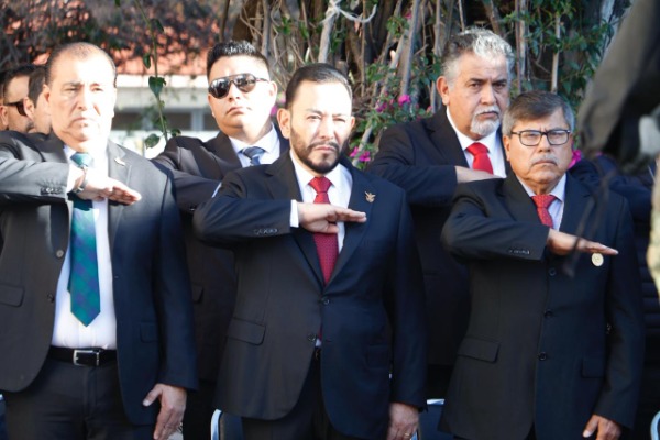 Encabezado por la diputada Sara Rocha Medina, presidenta de la Directiva del Congreso del Estado; los diputados Héctor Serrano Cortés, Cuahutli Badillo Moreno, y Emilio Rosas Montiel; el Secretario de Educación de Gobierno del Estado, Juan Carlos Torres Cedillo; el Gran Maestro de La Gran Logia Soberana e Independiente "El Potosí", Horacio Sánchez; Brígido Puente Martínez, Secretario de Vinculación de la Confederación de Grandes Logias Regulares de los Estados Unidos Mexicanos