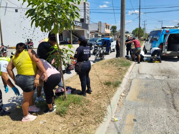 En ese momento circulaba con preferencia una motocicleta Italika rojo con negro, cuyo conductor no logró evitar el impacto, provocando que ambos vehículos colisionaran y sus ocupantes salieran proyectados al pavimento.