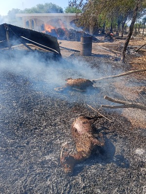 Un voraz incendio en una rastrojera de una localidad rural del municipio de Cerritos dejó cuantiosos daños materiales y animales muertos, la tarde del domingo.