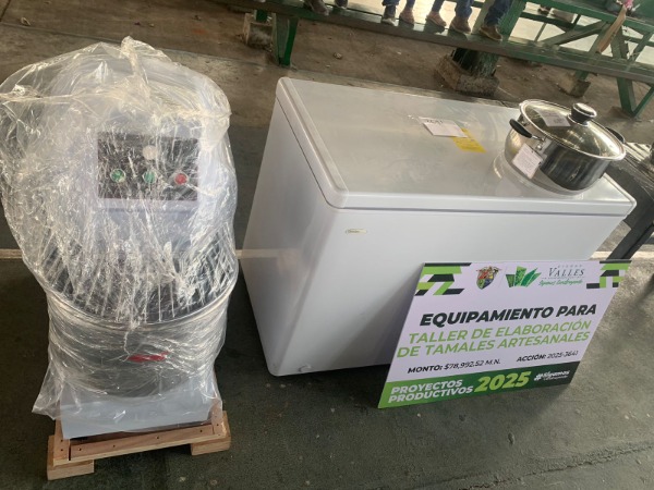 Los apoyos entregados abarcan diversos sectores como el agrícola, pecuario, artesanal y agroindustrial, incluyendo equipo para panaderías, elaboración de alimentos, talleres de embutidos, extracción de miel, así como implementos para el campo como remolques, sistemas de riego, herramientas y materiales de cercado.