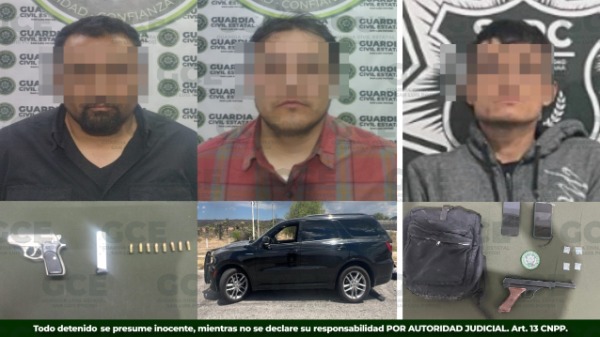 - La GCE aseguró dos armas de fuego y detuvo a tres personas.