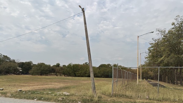 Uno de los postes está entre la vegetación a la orilla del camino, mientras que otro se ubica cerca de un área cercada. Habitantes de la zona señalan que llevan tiempo en estas condiciones, pero la preocupación ha crecido ante la posibilidad de que caigan con lluvias o fuertes rachas de viento.