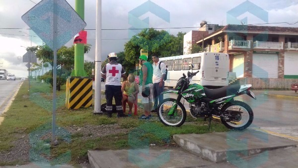 Pero al llegar a los topes la moto se derrapó ocasionando que los dos pasajeros cayeran, sufriendo raspones y golpes, por lo que fueron atendidos por personal de la Cruz Roja.