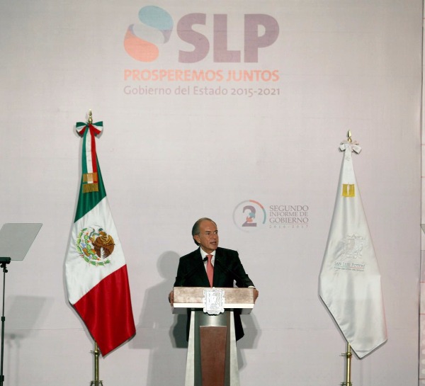 Por su parte el representante del Gobierno de la República y Secretario de Hacienda, José Antonio Meade Kuribreña, aseguró que el Gobernador del Estado Juan Manuel Carreras López, ha cumplido con su compromiso de generar empleos y combatir la pobreza, pues en estos dos años ha registrado San Luis Potosí importantes avances en ambos rubros, por lo que Meade Kuribreña reconoció que San Luis va y ¡va bien!