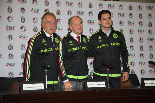 El Gobernador del Estado Juan Manuel Carreras López, el Presidente de la Federación Mexicana de Fútbol, Decio de María Serrano y el CEO del Atlético de San Luis Juan Alberto Marrero, presentaron oficialmente el encuentro que sostendrá el Selectivo Nacional de Fútbol y su similar de Trinidad y Tobago, bajo el lema de #FuerzaMéxico, como solidaridad de todas y todos los mexicanos ante los sismos del 7 y 19 de septiembre pasados.