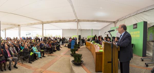 En su discurso, el rector de la UASLP, arquitecto Manuel Fermín Villar destacó que el vínculo entre universidad y sociedad, ha derivado en una comunicación estrecha y constante donde se sustenta la innovación como la capacidad de adaptación de la universidad, desde sus inicios a la actualidad.