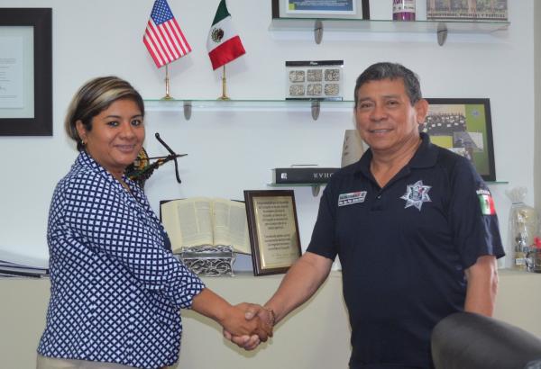 El General Arturo Gutiérrez García, Secretario de Seguridad Pública del Estado, recibió en sus oficinas a María del Carmen Ramos Hernández, Policía Estatal Operativa, quien representó al Gobierno de San Luis Potosí y a la Secretaría de Seguridad Pública del Estado en la 55ª Conferencia Anual de la Asociación Internacional de Mujeres Policías (IAWO), celebrada en Australia.