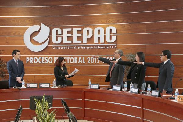 En Sesión Ordinaria, la consejera presidenta del Consejo Estatal Electoral y de Participación Ciudadana (CEEPAC), Laura Elena Fonseca Leal, tomó protesta de ley como consejera y consejeros electorales a Zelandia Bórquez Estrada, Marco Iván Vargas Cuéllar y Edmundo Fuentes Castro, nombrados por el Consejo General del Instituto Nacional Electoral (INE) para el período del 01 de octubre de 2017 al 30 de septiembre de 2024.
