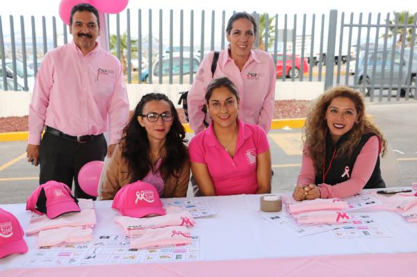 El edificio que alberga las instalaciones de los Servicios de Salud en el Estado, fue el punto de reunión para que autoridades y trabajadores de salud unieran voluntades para sumar acciones que sensibilicen y concienticen a la población sobre el autocuidado como parte fundamental en la lucha contra el cáncer de mama. Como parte del evento, en la explanada principal del edificio se instaló una feria de salud con stands informativos y de orientación, así como actividades lúdicas y recreativas para promover el ejercicio y la alimentación saludable como factores positivos para prevenir el cáncer de la mujer entre los trabajadores de la secretaría de salud y sus familias..