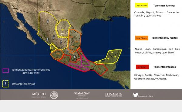 Informó que de acuerdo a pronósticos del Servicio Meteorológico Nacional se esperan que continúen los cielos nublados con tormentas puntuales muy fuertes, por lo que solicitó a automovilistas tomar algunas medidas preventivas tales como evitar cruzar vados o arroyos con corriente de agua, manejar con velocidad moderada, encender las luces del auto y usar siempre el cinturón de seguridad.