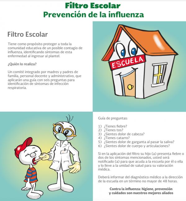 Si algún estudiante tiene fiebre o alguno de estos síntomas, se solicita a los padres de familia que no los envíen a la escuela, sino que los lleven a la unidad de salud para que reciba atención médica, haciéndonos conscientes de que es importante que no regresen a la escuela hasta que hayan pasado al menos 24 horas sin fiebre o algún otro síntoma de enfermedad respiratoria.