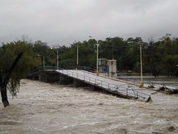 En la localidad, Protección Civil pide a las personas, vehículos de transporte tanto automotrices, como motos y bicicletas a que rodeen el río que se encuentra cerrado para seguridad de todas las personas por la fuerte corriente que lleva.