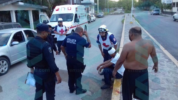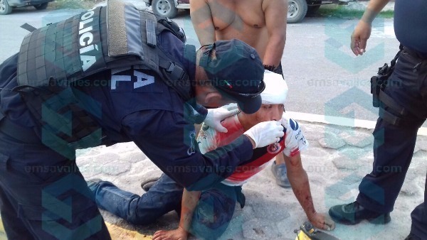 Por el lugar iban pasando elementos de la Policía Estatal, quienes le brindaron las primeras atenciones, y después se hicieron cargo los socorristas de la Cruz Roja, éstos trasladaron al herido a la base para darle unas puntadas en la herida, ya que sangraba mucho.