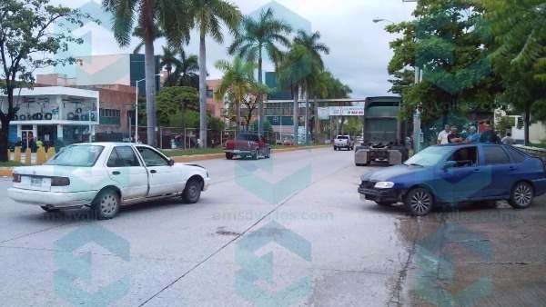 El conductor del coche blanco no logro a frenar y golpeo en un costado al auto azul, resultando lesionada una mujer que acompañaba Onésimo, la cual fue atendida por personal de Cruz Roja y sería llevada a un hospital.