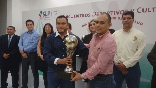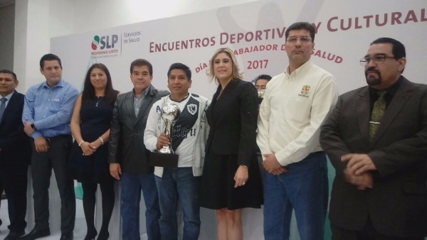 La doctora Mónica Liliana Rangel Martínez, Secretaria de Salud y el doctor Arturo Hernández Tenorio, secretario de la Sección 33 del Sindicato de Salud, entregaron los premios a deportistas y trabajadores participantes del todo el estado.