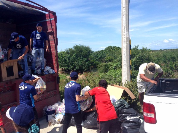 Muy buena respuesta ha tenido la Universidad Autónoma de San Luis Potosí luego de que en los últimos días, una comitiva de 15 personas está llevando a cabo la entrega directa, de 27 toneladas de los víveres que se recopilaron en esta institución, para apoyar a las localidades siniestradas por los sismos.