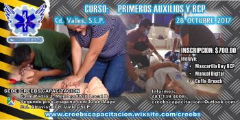 Este sábado 28 de Octubre se estará impartiendo el curso de primeros auxilios y RCP (Reanimación Cardiopulmonar), en el Centro de Capacitaciones CREEBS, ubicado en Pedro J. Méndez No. 730, Local B, Segundo Piso, esquina con 30 de Mayo, en la colonia Altavista de nuestra ciudad, en un horario de 12:00 p.m. a 20:00.