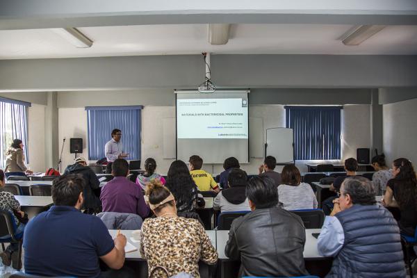 Los Programas Multidisciplinarios del Posgrado en Ciencias Ambientales de la Agenda Ambiental de la UASLP, en el marco del Seminario de Investigación "Ciencia y Medio ambiente", ofrecieron la conferencia: Obtención de materiales con propiedades bactericidas, a cargo del Dr. Simón Yobanny Reyes López, investigador del Departamento de Ciencias Químico Biológicas y del Instituto de Ciencias Biomédicas de la Universidad Autónoma de Ciudad Juárez (UACJ).
