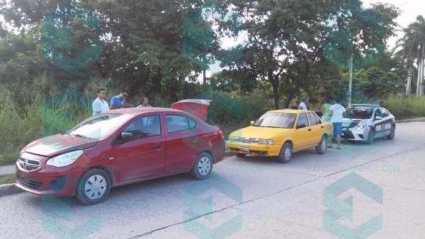 Un jovencito que manejaba distraido un automóvil Nissan Tsuru amarillo, provocó un choque en la entrada al fraccionamiento Valle Alto.