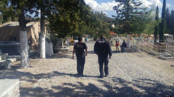 Ante la llegada de cientos de personas que acuden año con año, a los cementerios para recordar a sus difuntos, se coordinan acciones conjuntas en las que participan la Dirección General de Seguridad Pública Municipal, Policía Estatal y de Fuerza Metropolitana, Bomberos, Protección Civil y la Cruz Roja Mexicana y autoridades federales.