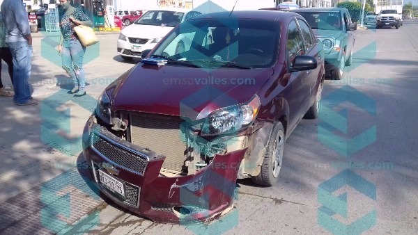 El coche guinda era manejado por Darío Jiménez de 75 años de edad, con domicilio en El Naranjo, y al parecer fue quien provocó el choque por falta de precaución.