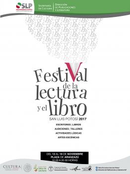 El próximo 12 de Noviembre dará inicio el denominado "Festival de la Lectura y el Libro 2017", el cual se llevará a cabo en la Plaza Aranzazú, de San Luis Potosí Capital, el cual organiza la Secretaría de Cultura en coordinación con otras instituciones y su horario será de las 10 de la mañana hasta las 20 horas.