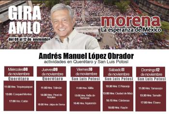 Desde el día de ayer el líder nacional de MORENA Andrés Manuel López Obrador se encuentra de gira visitando algunos municipios de la huasteca potosina.