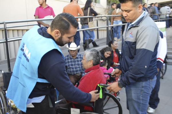 Entregan 3 sillas de ruedas, 215 lentes, 100 consultas dentales y aparatos auditivos.