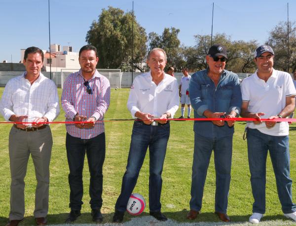 En este evento, el mandatario estatal cortó el listón inaugural, develó la placa conmemorativa y dio la patada inicial a un encuentro de futbol entre trabajadores cetemistas contra el equipo del Gobierno del Estado, en lo que significó un encuentro amistoso.