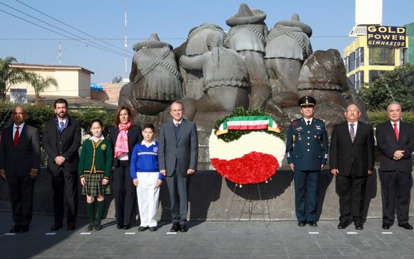 Previamente, acompañado por la presidenta del Sistema DIF en el estado, Lorena Valle Rodríguez y representantes de los poderes Legislativo y Judicial, así como de la Secretaría de la Defensa Nacional, el titular del Ejecutivo estatal hicieron Honores a la Bandera, entonaron el Himno Nacional Mexicano y montaron una guardia de honor y depositaron una ofrenda floral ante el monumento a la Revolución.