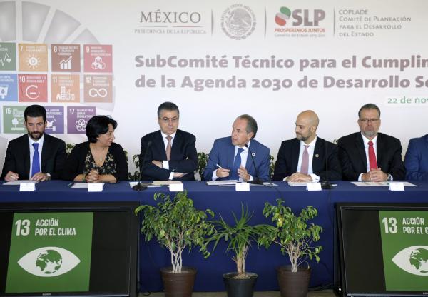 Con la finalidad de establecer los compromisos de integración social, ambiental y económica en beneficio del crecimiento de las familias potosinas, el Gobernador del Estado Juan Manuel Carreras López, acompañado por Adolfo Ayuso Audry, Director General de la Agenda 2030 para el Desarrollo Sostenible de la Oficina de la Presidencia de la República, encabezó la Instalación del Subcomité Técnico para el cumplimiento de este objetivo para San Luis Potosí.