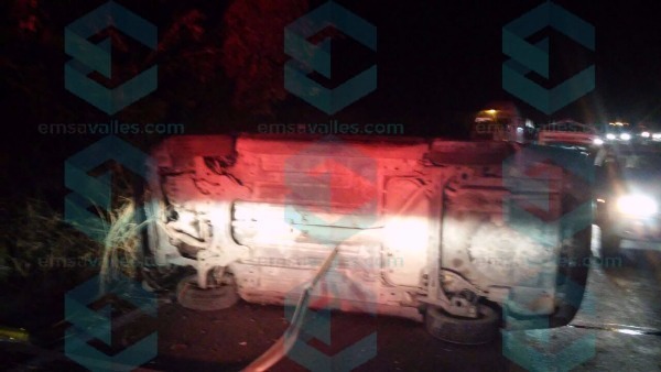 Esta noche sucedió un accidente en el kilómetro 380 de la carretera federal Valles-Tamazunchale, entre el Hospital General y el panteón Jardines de Oxitipa, acudiendo al auxilio policías y personal de Cruz Roja.
