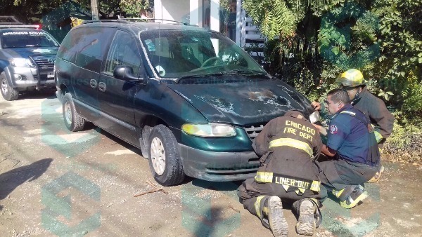 Debido a un corto circuito se incendió una vagoneta Voyaguer color verde, conducida por un vecino de la colonia San Rafael.