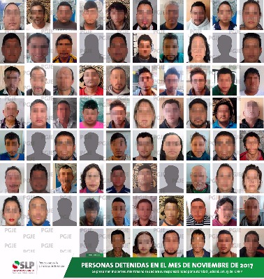 La Procuraduría General de San Luis Potosí (PGJSLP) informó que durante el mes de noviembre pasado, agentes ministeriales llevaron a cabo la detención de 77 personas por diversos delitos, con lo que se dio cumplimiento a 61 órdenes de aprehensión, 6 órdenes de reaprehensión, 3 detenciones en flagrancia y 2 órdenes de arresto.