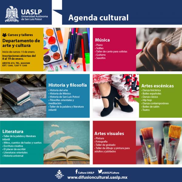 Con el fin de promover entre la comunidad universitaria y sociedad potosina la difusión de arte y la cultura, el Departamento de Arte y Cultura de la División de Difusión Cultural de la Universidad Autónoma de San Luis Potosí, ofrece un sinfín de cursos para todas las edades.