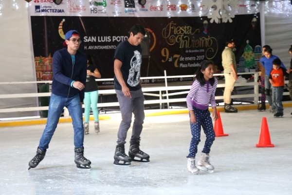El Ayuntamiento de San Luis Potosí invita a las familias potosinas y la población en general para que asista a la "Villa Navideña" en la Plaza de Los Fundadores a patinar en la pista de hielo de manera gratuita, en un horario de 10 de la mañana a 9 de la noche.