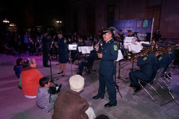 Con entusiasmo de las y los potosinos, este jueves se presentó en plaza de Armas la Banda de Música de la IV Región Militar, de la Secretaría de la Defensa Nacional (SEDENA) bajo la dirección del Maestro Carlos Mauro Martínez Salinas, con motivo del Centenario de la Constitución Política de los Estados Unidos Mexicanos.