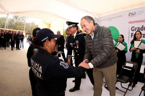 Asimismo, manifestó que en San Luis Potosí con acciones concretas: Hemos transformado la Procuraduría en la nueva Fiscalía General del Estado con una mayor fuerza y autonomía para perseguir y sancionar a quienes infrinjan la ley y próximamente concluirá el nuevo Centro Estatal de Control y Confianza que permitirá mejorar el proceso de reclutamiento, permanencia y promoción de los integrantes de nuestras corporaciones policiales.