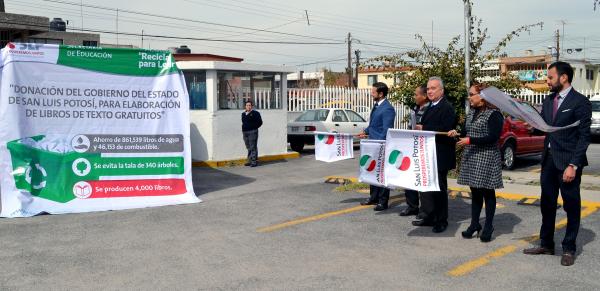 San Luis Potosí es el primer Estado en realizar donación de papel en desuso de las dependencias gubernamentales para destinarse a la maquila de Libros de Texto Gratuitos para las niñas y niños potosinos. Importante programa impulsado por nuestro Gobernador Juan Manuel Carreras López en pro de la educación y cuidado de los recursos naturales.