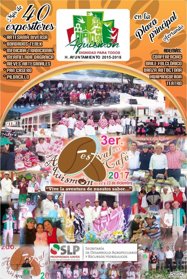 El Tercer Festival del Café en Aquismón aprovecha así la coincidencia con la temporada vacacional de invierno 2017-2018 para que los turistas se lleven algo más que diversión en su itinerario por el municipio, mientras que los expositores tendrán la opción de colocar sus productos en manos de los visitantes, quienes luego se convierten en sus eventuales promotores.