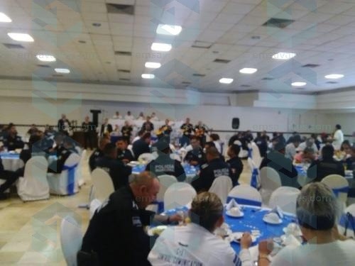 Desde el 22 de diciembre de 1949 a iniciativa de la Asociación Mexicana de Automovilística, se celebra el Día del Policía, por ello está mañana el alcalde Jorge Terán Juárez, el titular de la oficina de enlace del fondo de fortalecimiento para la seguridad de los municipios-FORTASEG, Ricardo Escudero Pozos; así como el Director de Policía y Tránsito Municipal, Jubileo Ramírez Jacinto, tras las tradicionales mañanitas, les ofrecieron un desayuno a los elementos y les anunciaron apoyos económicos.