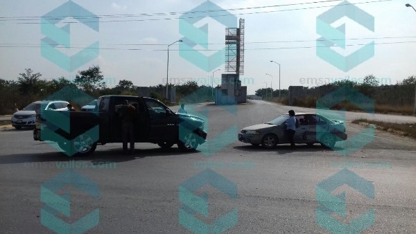 Hace algunos minutos una camioneta Dodge color azul, doble cabina, chocó contra un automóvil Nissan Sentra color gris, en el libramiento poniente.