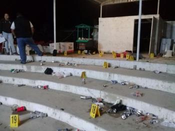 Después de haber pedido auxilio al 911, al lugar arribaron diversas corporaciones policíacas y peritos del forense, quienes dieron fe de los hechos y levantaron los casquillos percutidos, así como los cadáveres que quedaron derribados entre sillas tumbadas, cigarros y latas de cerveza.