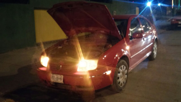 Debido a la falta de precaución, un hombre que conducía un automóvil Volkswagen Jetta color rojo, chocó contra una vagoneta Chrysler blanca.