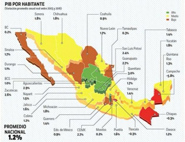 El promedio nacional tan solo oscila en el 1.2 por ciento, lo que representa que la entidad potosina duplica el indicador en crecimiento per cápita.