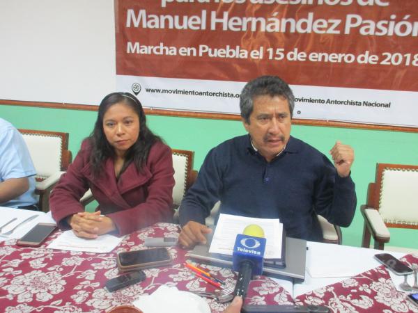"El próximo 15 de enero, día del informe del Gobernador de Puebla, José Antonio Gali Fayad, 40 mil antorchistas poblanos van a marchar en la ciudad capital, para denunciar que no hemos visto avances serios en las investigaciones sobre el crimen de nuestro compañero Manuel Hernández Pasión y porque la Fiscalía General del Estado no ha detenido a los autores materiales e intelectuales de este crimen político que lastimó a miles de campesinos de la Sierra Nororiental de Puebla y que es un atentado contra la organización popular", dijo el portavoz .