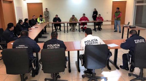 Como parte de las acciones que la Secretaría de Seguridad Pública del Estado (SSPE), realiza para salvaguardar la integridad de la ciudadanía, el Secretario de la corporación policial, Comisario Jaime Ernesto Pineda Arteaga, se reunió con personal de la Protección Civil Estatal, Policía Federal, Bomberos, Policías Municipales, para la coordinación interinstitucional del Operativo Candelaria 2018
