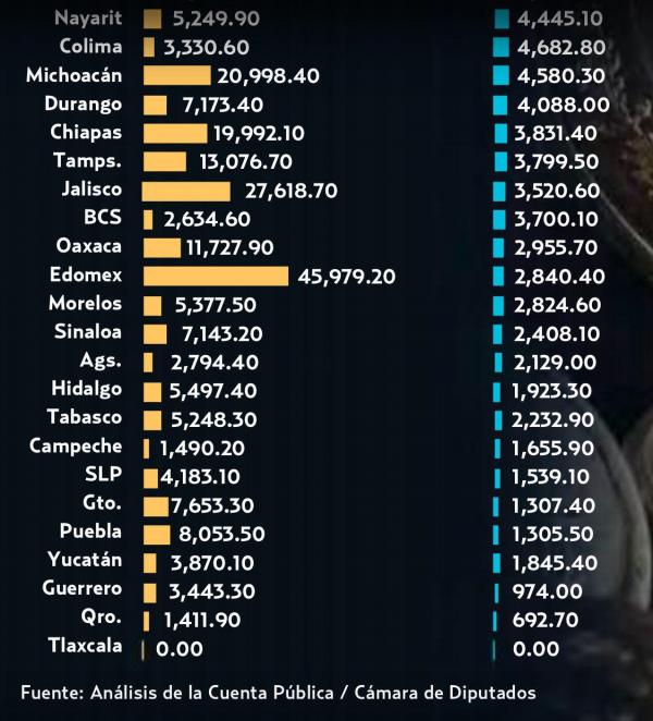 El balance que realiza la ASF sobre el endeudamiento general de las entidades, revela que las 32 entidades suman adeudos por el orden de los 564 mil 224 millones de pesos, esto equivale a que cada uno de los mexicanos paguen 4 mil 720 pesos, lo que representa la media nacional.