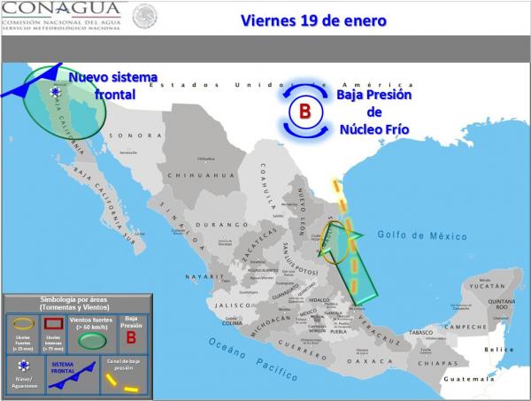 Un nuevo frente frío ingresará en norte de Baja California en el transcurso del viernes y se moverá hacia el sureste, recorriendo en noroeste y norte de México entre el sábado y domingo.