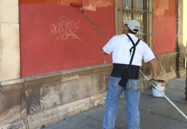 El Ayuntamiento de la capital retiró 8 mil 200 metros cuadrados de grafiti en cantera en diversos puntos, utilizando equipo especializado y respetando la normativa del Centro Histórico en la realización del trabajo para conservar los monumentos y edificios en las mejores condiciones